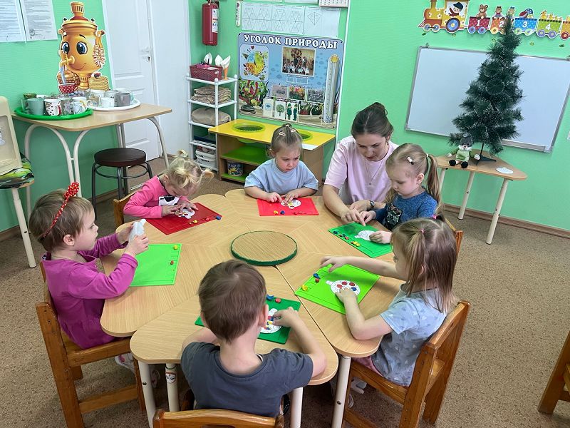 К ребятам из группы "Одуванчики" в гости пришел зайчик и попросил помочь украсить ёлочные шары. Вместе с педагогом-психологом дети закрепили умение отщипывать и раскатывать между ладонями пластилин.