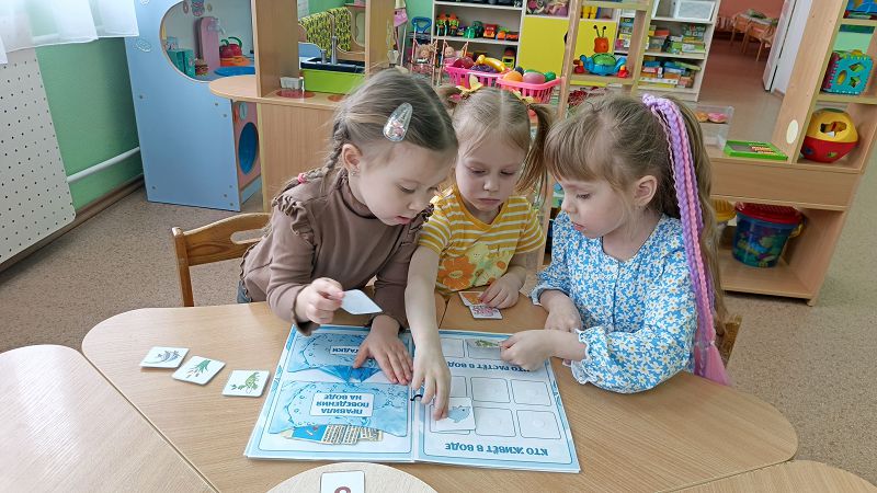 В разновозрастной группе было проведено занятие, на котором дети поиграли в игры, которые показывают важность воды в жизни людей, животных, растений, морских обитателей. Рассмотрели круговорот воды в природе, какое состояние воды бывает, кто живёт в воде. Всё было сделано для понимания, что воду нужно беречь и экономить!