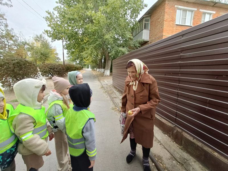 Сегодня воспитатель Е.А. Черникова с ЮПИДовцами из группы «Колокольчики» ходили на экскурсию, а по пути поздравляли людей старшего поколения, которые несомненно молоды душой, с праздником! А ещё вручили им памятки о безопасном переходе через дорогу и угостили яблоками!