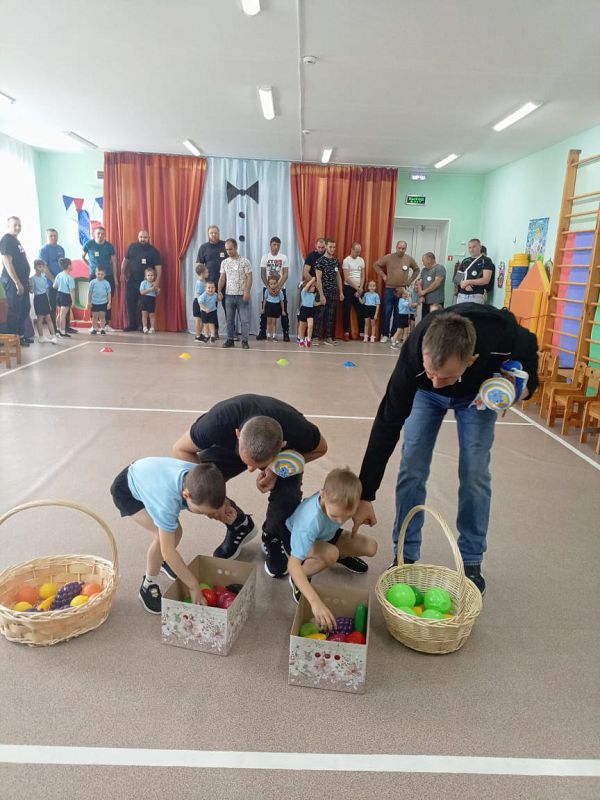 Веселый праздник в честь наших пап прошел сегодня в нашем детском саду. В шуточных эстафетах папы соревновались между собой, где победила дружба и любовь к детям! Независимое жюри Е.С. Осипук подвела итоги соревнований и поздравила всех с праздником! Хочется сказать папам спасибо за юмор, активность, за доброе сердце, полным отцовской любви! Желаем гордится своим ребенком и разделять с ним каждую победу, каждый успех! С праздником!