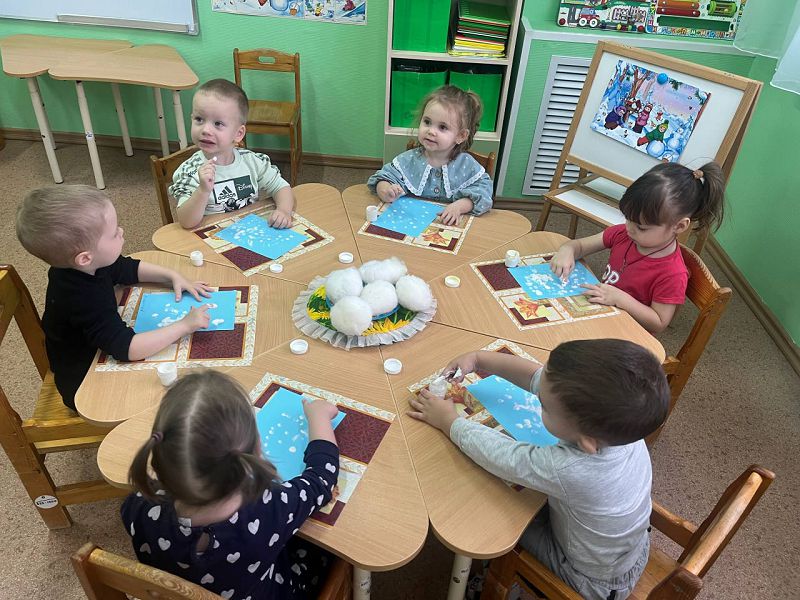 Сегодня, малыши группы «Одуванчики», используя нетрадиционную технику рисования пальчиками, учились рисовать снежок. Светлана Владимировна познакомила детей с новыми приёмами пальчиковой техники. Детям понравилось рисовать новым методом, они очень старались, и у них получился настоящий снегопад!