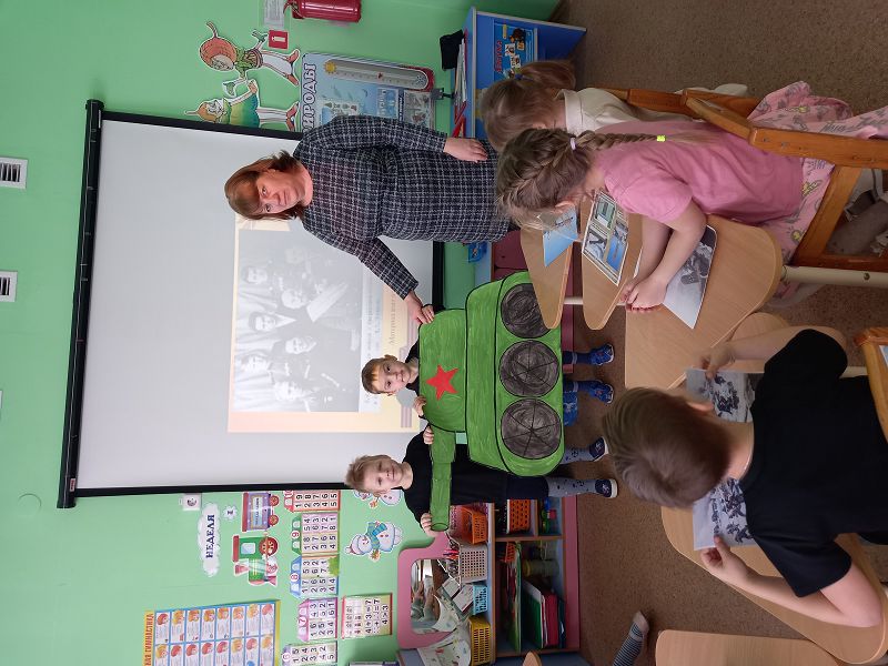 В разновозрастной группе «Ромашки» прошло занятие по патриотическому воспитанию на тему «Великая битва – великой победы», посвященное 83-ей годовщине Тацинского танкового рейда. Воспитанникам была представлена презентация, из которой ребята узнали, как в самый разгар Сталинградской битвы командир корпуса генерал-лейтенант танковых войск Баданов В.М. получил приказ уничтожить вражеский аэродром в станице Тацинской. Танкистам помогали юные жители станицы Гриша Волков и Федя Игнатенко, которые указали путь к аэродрому.