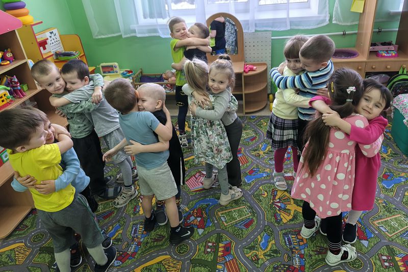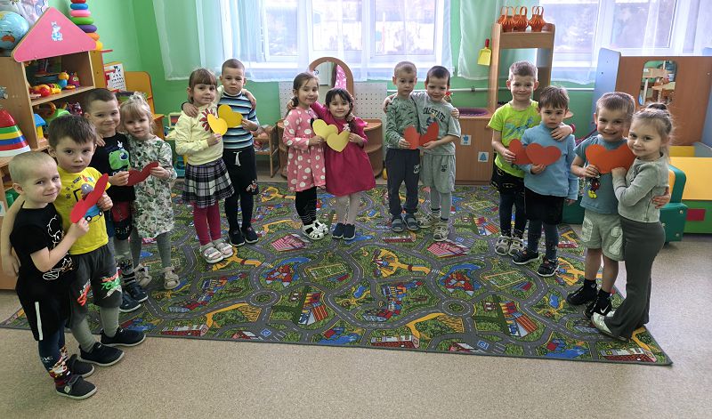 С воспитанниками средней группы "Васильки" в течение дня проводились беседы о дружбе, дети играли в игру "Найди себе пару", поделились теплом своих объятий с родителями и друг с другом, сделали открытки "Обнимашки".