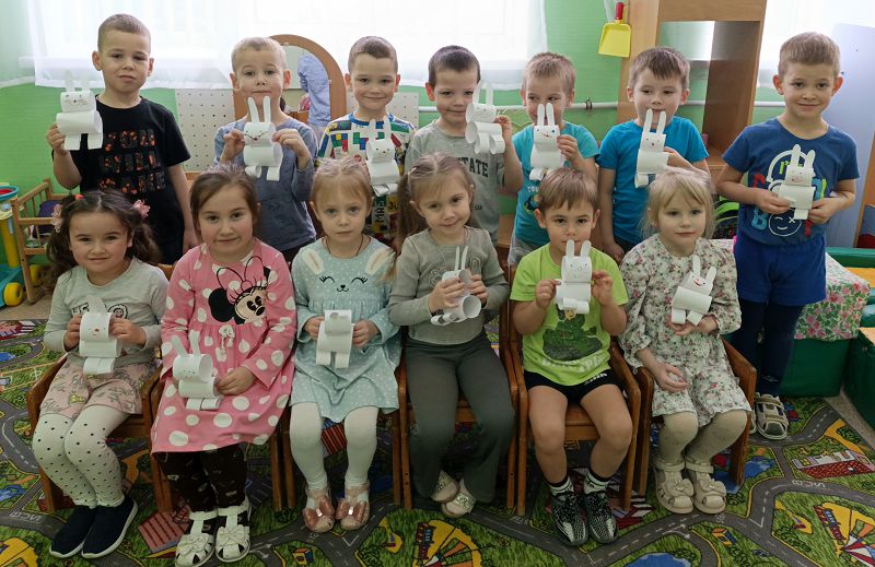 В средней группе "Васильки" прошло занятие, посвящённое этому лесному жителю. Воспитанники узнали много нового и интересного о жизни и повадках этого животного. Поиграли в подвижную игру "Волк и заяц", вспомнили загадки и сказки с участием любимого зверька. А в заключение, с помощью воспитателя Смирновой Н.В., смастерили из белой бумаги забавных зайчат!