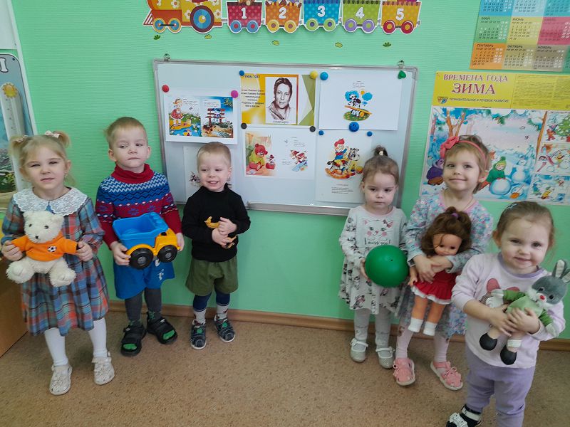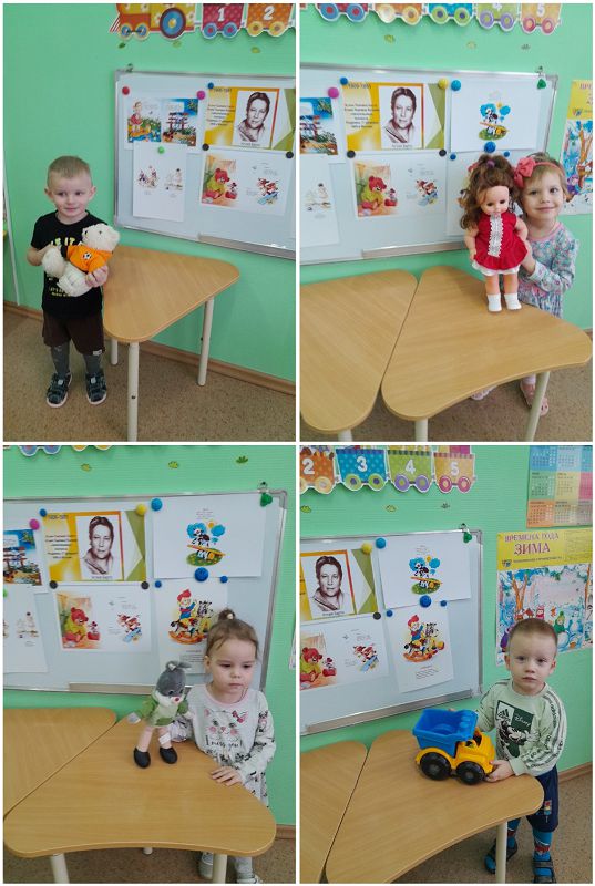 Дети с интересом рассматривали иллюстрации о творчестве писательницы, узнали, что она написала много стихов про игрушки, и с удовольствием их слушали.