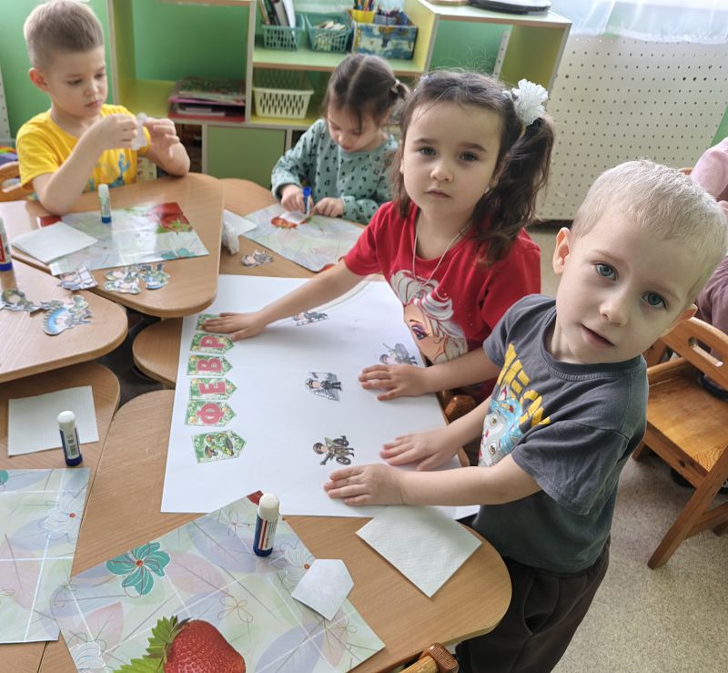 Вот и воспитанники, с воспитателем Смирновой Н.В., сделали поздравительную стенгазету.