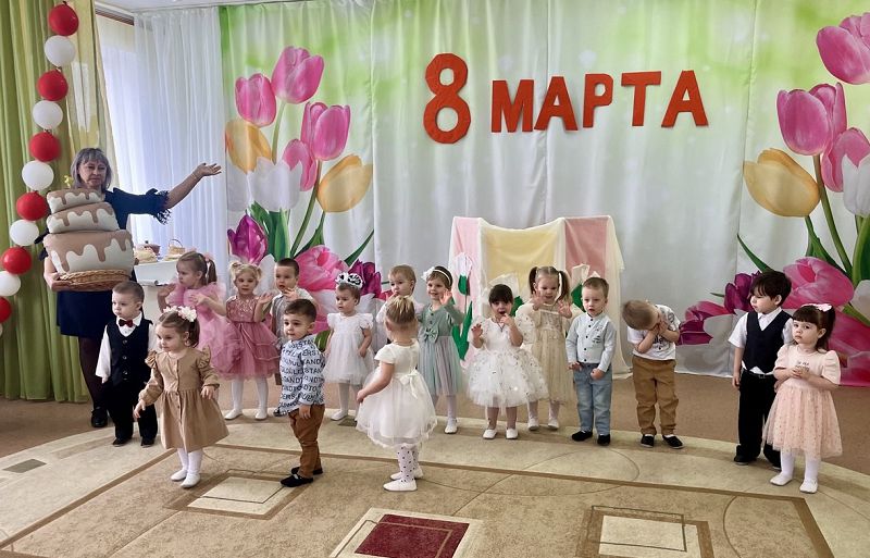 Мы сегодня нарядились, будем петь и танцевать, будем вместе веселиться, будем маму поздравлять. Сегодня в младшей группе "Одуванчики" прошло яркое событие, согревающее лучами солнца и улыбками. Дети испекли для мамы пирог, продукты для которого им помогли найти герои кукольного театра - мышка (муку), корова (молоко) и курочка (яйца). На цветочной полянке собрали душистый мёд. Девочки-поварята испекли пирог и все вместе поздравили мам!