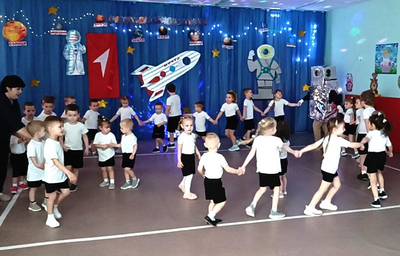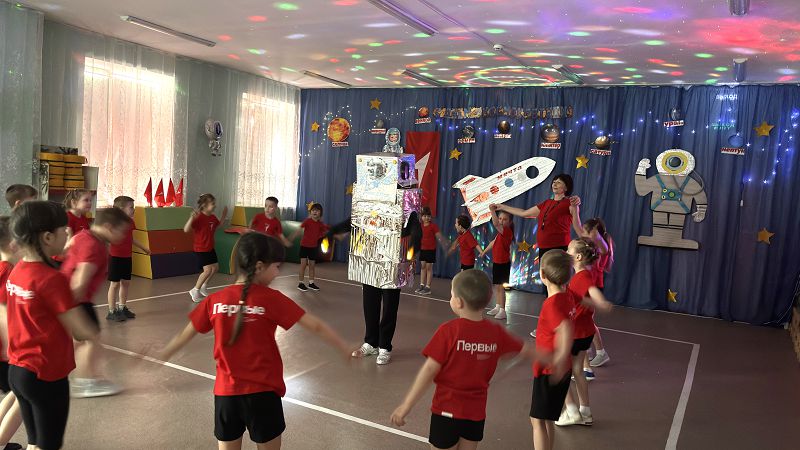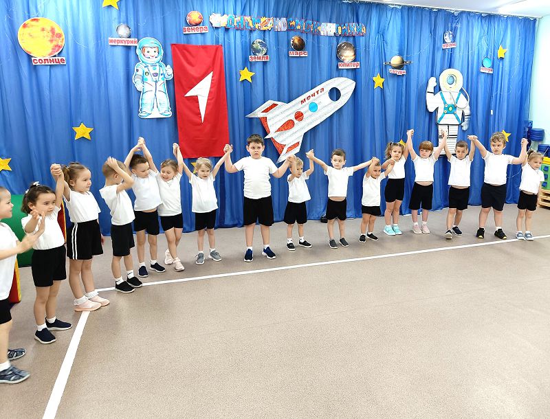 Праздники начинались с торжественного построения и «запуска» космической ракеты — все вместе отправлялись в путешествие по галактике.