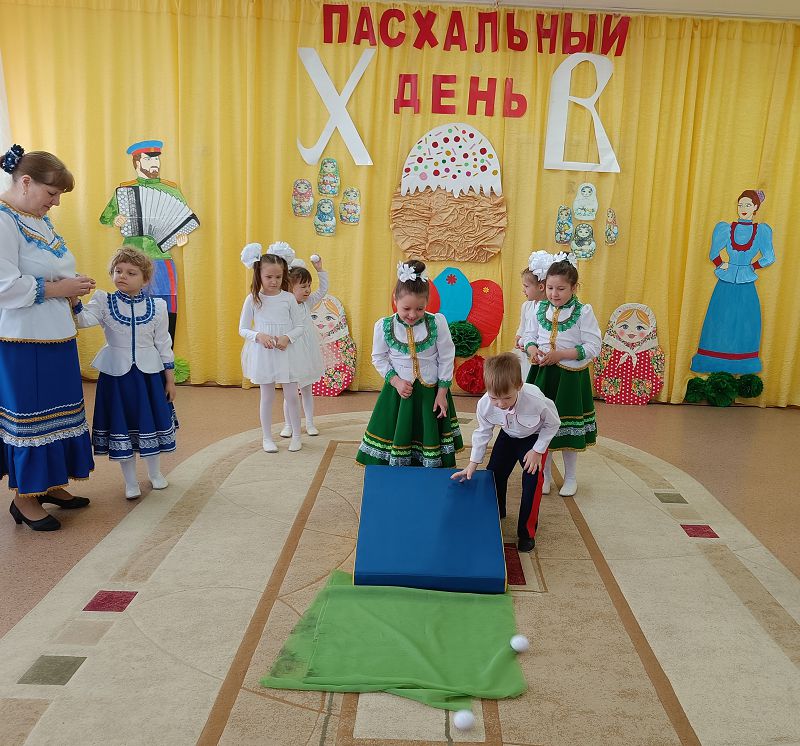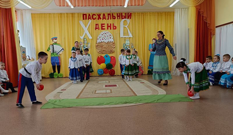 Особое место заняли традиционные пасхальные игры: «Катание яиц», «Цветные яйца», «Пасхальные загадки». Зажигательный танец с балалайками исполнили дети из гр. «Колокольчики», а нежный танец с вербочками и колокольчиками станцевали девочки из гр. «Ромашки». Такие развлечения не только дарят радость, но и знакомят детей с народными обычаями. Поздравляем всех со светлой Пасхальной неделей!