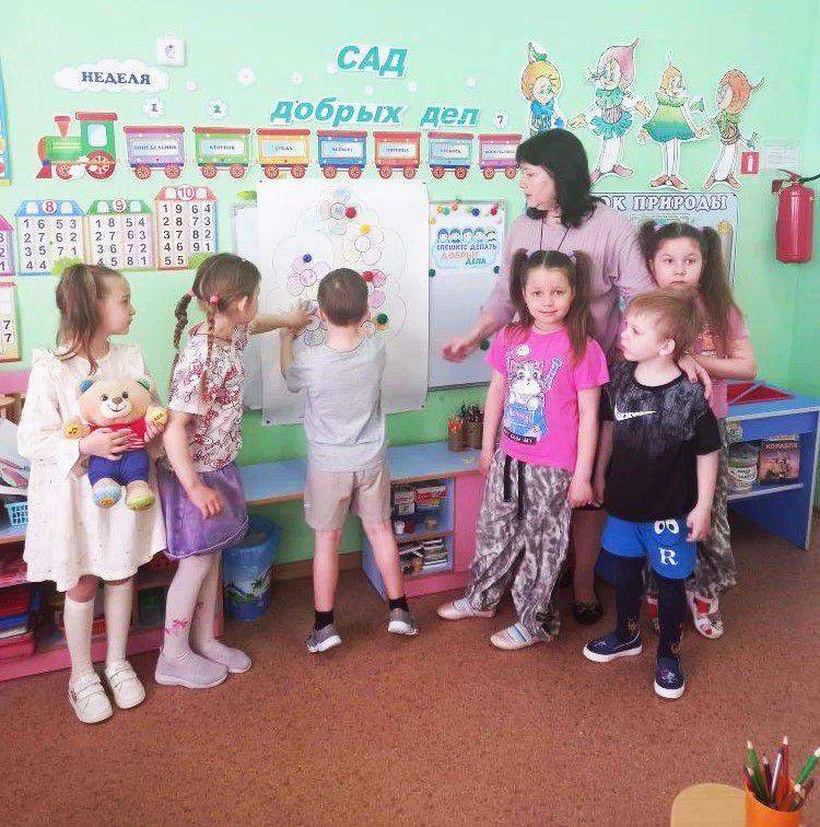 Ребята отправились в путешествие со сказочным героем по «Саду добрых дел», где растут не обычные цветы, а цветы поступков. Поиграли в игру «Что посеешь, то и пожнешь», во время которой научились отличать добрые семена от недобрых и научились видеть какие семена мы сажаем своими поступками. Выполнили упражнения «Волшебная коробочка», и «Я могу быть добрым», в процессе которых научились делать осознанный выбор в пользу добрых дел. Создали свои собственные цветы добрых поступков и «посадили» их в общий «Сад добрых дел». Во время путешествия ребята узнали, что каждый поступок - это волшебное семечко. Он может быть добрым, а может, наоборот, обидеть человека. А добрые поступки выращивают добрые качества в человеке и его характер.
