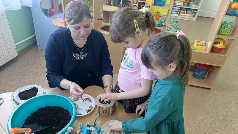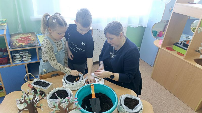 С началом весны в каждой группе детского сада появляется огород на подоконнике. Целью посадки огорода является воспитание экологической культуры детей, развитие познавательных интересов.