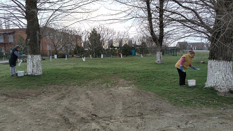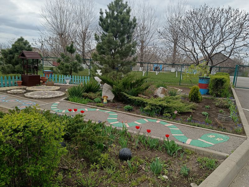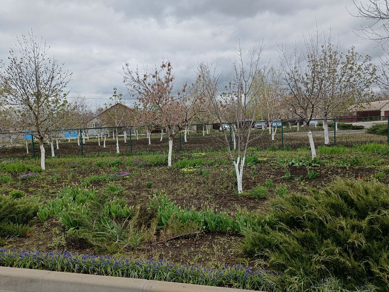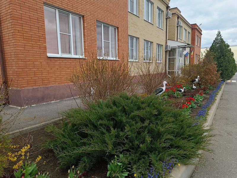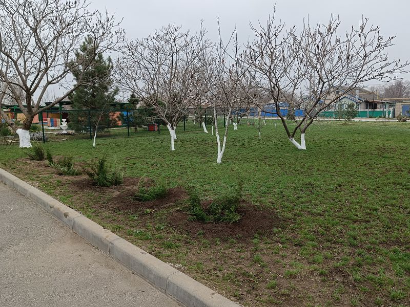 На территории нашего детского сада и за ее пределами появились новые молодые деревца: липы, туя, дубы, черёмуха, кустарник – можжевельник, магонии. Произведена обрезка и побелка деревьев.