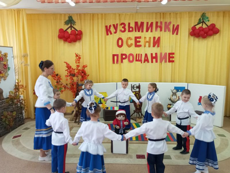 Сегодня в логопедической группе "Ромашки" прошло музыкально- фольклорное мероприятие "Кузьминки – осени прощание". В народе говорят: «Как Кузька упадёт, так и осени конец!». После хороводного величания Кузьмы – он упал! Песнями и прибаутками дети проводили Осень!