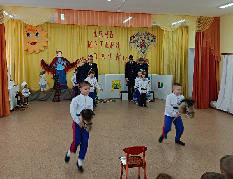 Сегодня прошло мероприятие для детей, посвящённое культуре и традициям казачества. Этот праздник имеет исторические корни. Сегодня вспоминают всех женщин казачек. Наш праздник включил в себя концерт с песнями, танцами, стихами и частушками. Также на празднике присутствовали гости – кадеты Тацинского казачьего техникума. Они показали замечательный концерт! В теплой непринужденной обстановке ребята пообщались вместе, поиграли в казачьи игры, пели песни, водили хоровод, читали стихи! Такие встречи сближают и радуют, воспитывают взаимопонимание и любовь через приобщение к донскому казачеству.