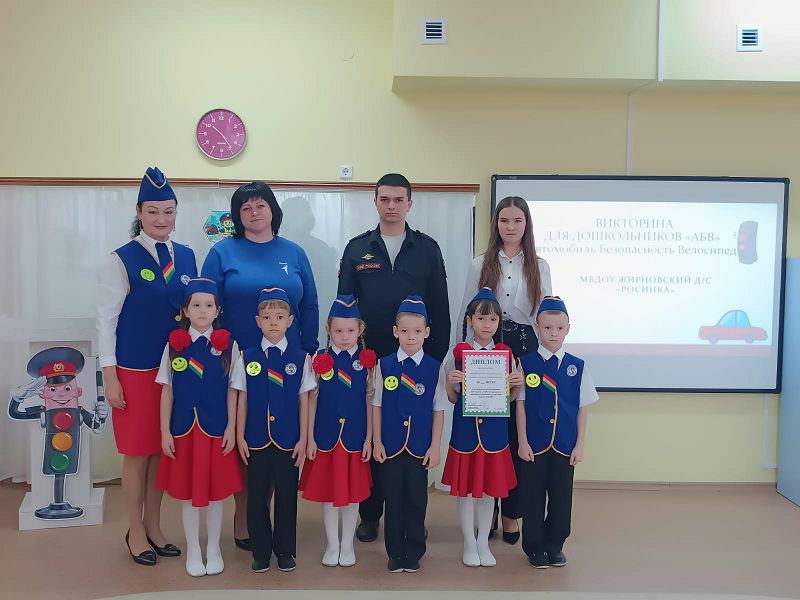 Сегодня состоялся муниципальный этап познавательно-обучающей викторины «АБВ». Соревновались три команды: Быстрогорский д/с «Колобок», Жирновский д/с «Ивушка» и наш д/с «Росинка». Вопросы были непростые, они касались и истории возникновения дорожного движения, и знания дорожных знаков, и правил поведения на дороге. Жюри конкурса инспектор по пропаганде БДД ОГИБДД по Тацинскому району В.К. Брувер, методист МБУ ИМЦ А.С.