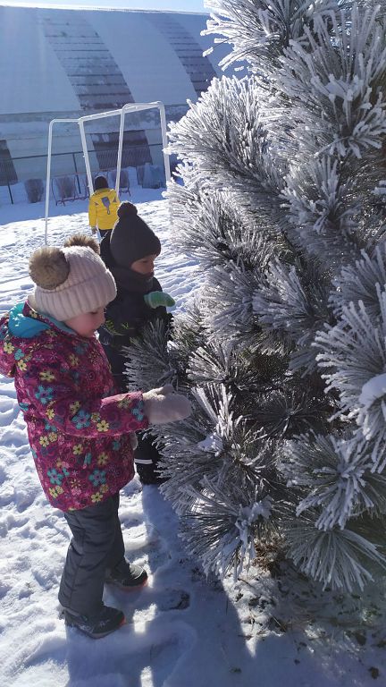 Почему щёчки стали розовые, а настроение весёлое! Дети любовались, как снег искрится на солнце, подбрасывали его. Любовались инеем, который осыпается с деревьев как сотни искрящихся алмазов. Смотрели, как зима укутала ёлки, берёзы, сосны, кусты! А ещё дети получили заряд энергии от самой зимушки-зимы!
