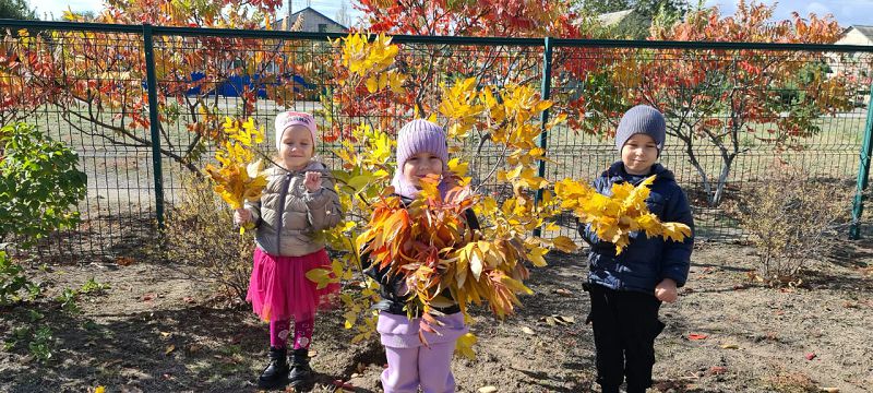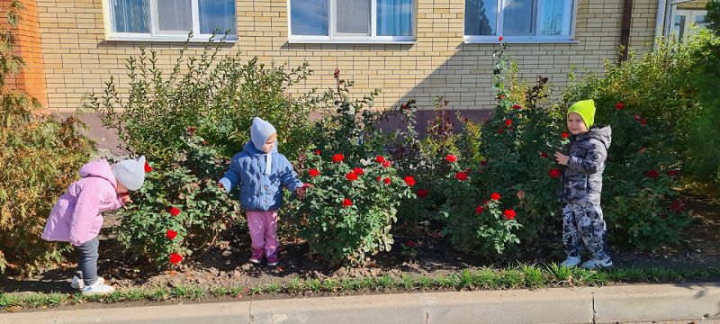 Ребята побегали по листьям и послушали как они шуршат. Играли в игру "Найди такой же листик, какой покажу". Дети любовались пышным цветением осенних роз. Хорошо, когда на территории детского сада такое количество разновидностей деревьев, кустарников и цветов! Послушайте и вы как шуршат листочки под ногами детей на нашем видео!