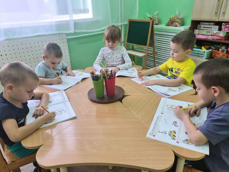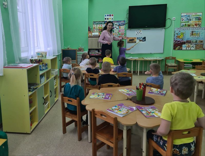 Сегодня, на занятии по обучению грамоте, в средней группе " Васильки", дети познакомились с твёрдыми и мягкими согласными звуками "С-Сь" Цель занятия: побуждать различать и произносить изолированные звуки в игровых упражнениях. В играх "Песенка насоса", "Подскажи словечко", "Кто внимательный", "Раскрась листья" дети постигали основы грамотности. Провели физминутку "Пальчики".