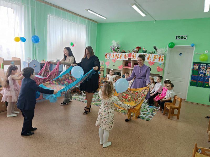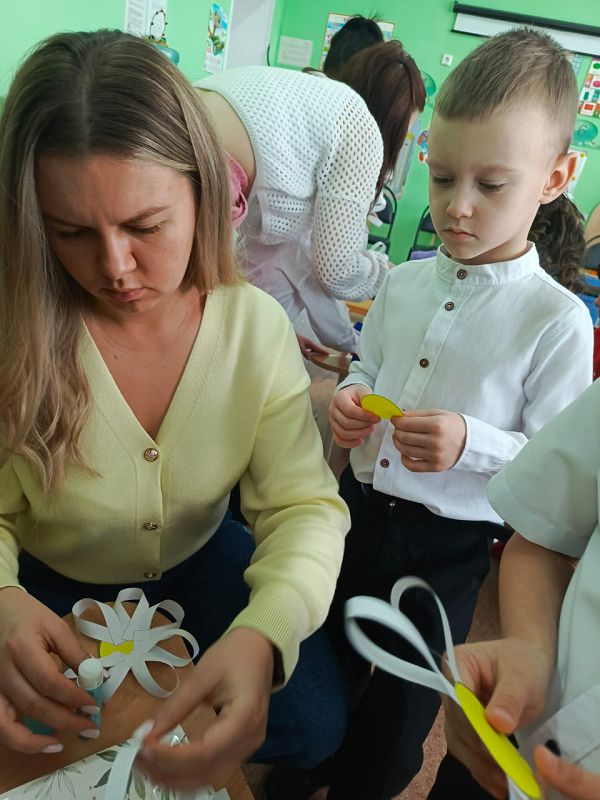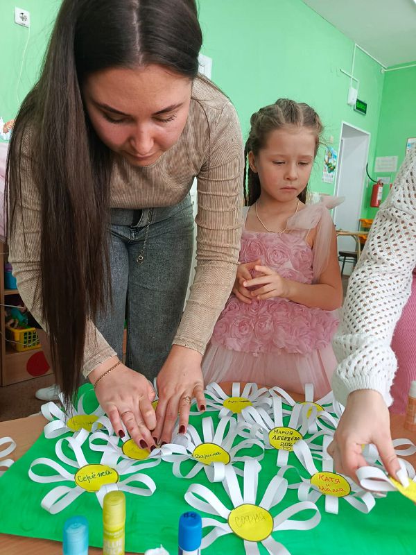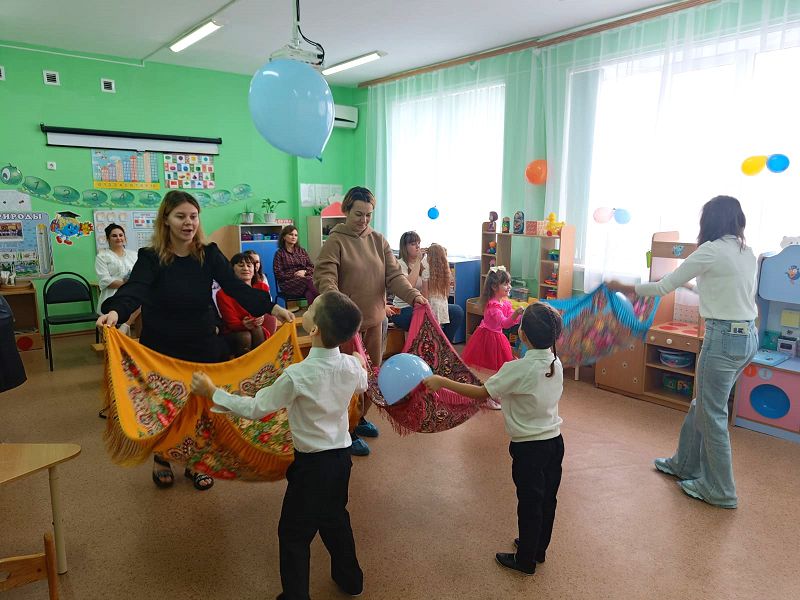 Активными участниками на празднике были мамы наших детей. Мамы пеленали кукол, пели им колыбельные песни. Вместе с детьми играли с воздушными шарами, рисовали портреты. Дружно прошла работа в творческой мастерской, изготовили праздничное «Ромашковое поле»