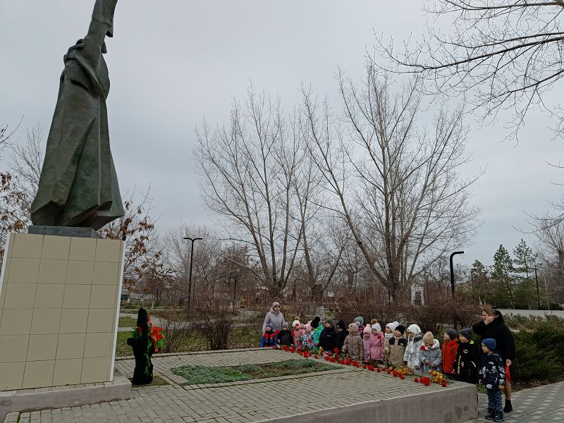 Сегодня ребята из групп «Ромашки» и «Колокольчики» возложили цветы к памятнику Воину-освободителю. С детьми была проведена предварительная беседа. Почтили память героям минутой молчания.