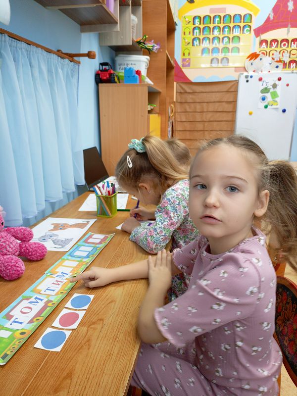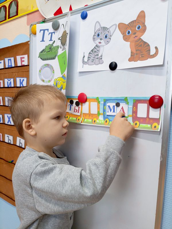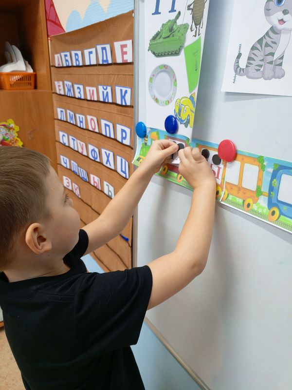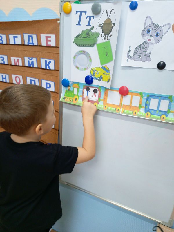 Во время занятий ребята научились определять место заданного звука в слове и количество слогов в словах. Чтобы занятия были интересными, а знания закрепились надолго, буквы и слоги ребята пишут в тетрадях, лепят из пластилина, используют в работе кассу букв и магнитную доску. Ребята с удовольствием поиграли в игры: «Что пропало?», «Хлопни в ладоши» если услышишь в слове звук [Т].