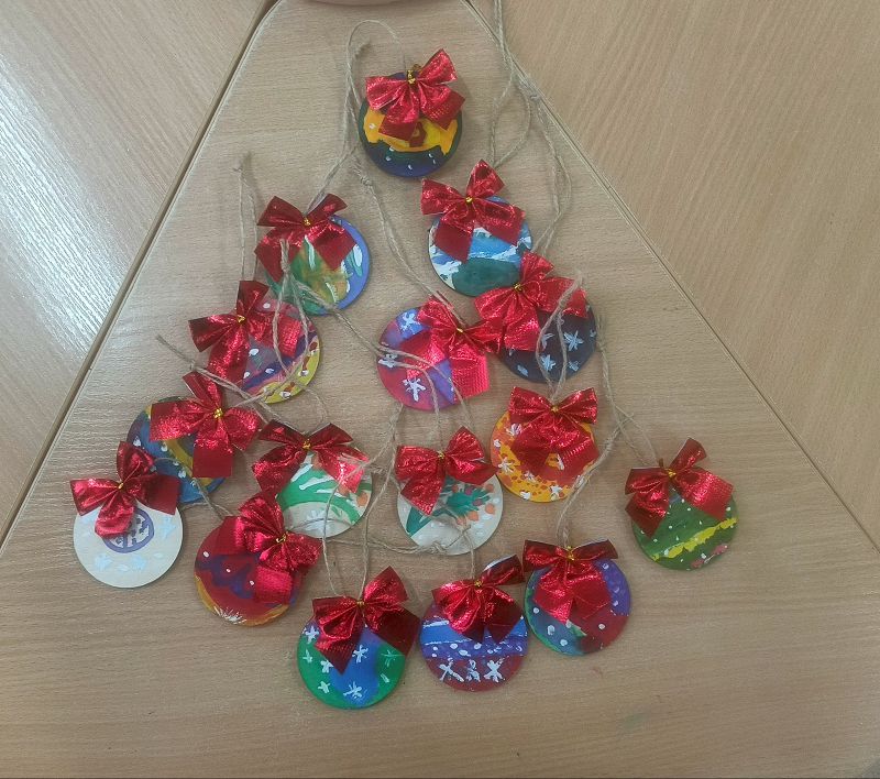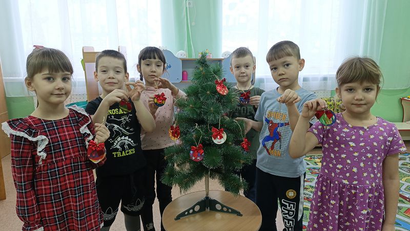 Украшение ёлки – незабываемая традиция самого светлого и радостного праздника. Так, дети подготовительной группы «Колокольчики», с воспитателем Колесниковой Д.Н., решили украсить ёлку игрушками, сделанными своими руками. Дети с интересом и увлечением раскрасили свои новогодние шары, после чего украсили новогоднюю ёлку в группе, в предвкушении чудес и волшебства. Ёлочка заиграла разноцветными шарами, а у ребят появилось праздничное настроение.