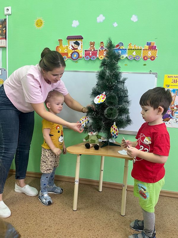 К ребятам из группы "Одуванчики" в гости пришел зайчик и попросил помочь украсить ёлочные шары. Вместе с педагогом-психологом дети закрепили умение отщипывать и раскатывать между ладонями пластилин.