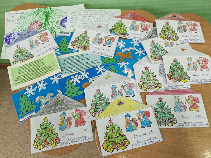 Несколько дней с воспитанниками нашего детского сада группы «Васильки» и «Колокольчики» делали своими руками фронтовые письма, открытки для наших солдат.