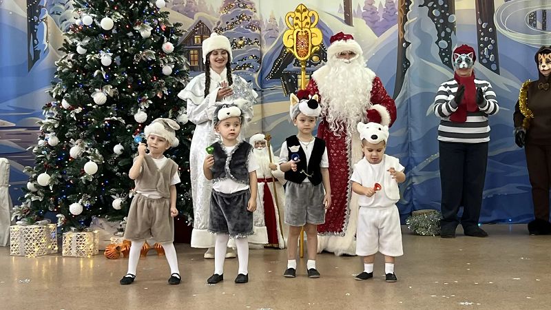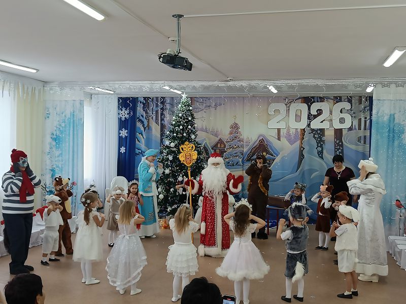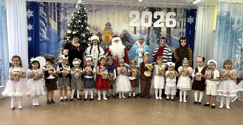 Кружит в полях метелица, гудят, поют леса. И в новый год случается, приходят чудеса. Только мало дверь открыть, нужно дружно повторить: «Сказка, сказка появись! Сказка, сказка расскажись!». Вот так и к детям группы «Васильки», с помощью волшебницы «Зимы», пришла новогодняя сказка. Кот Матроскин доставал из своего волшебного чемодана задания для ребят. Дети танцевали с фонариками, колокольчиками и снежинками. Пели песни, рассказывали стихи Деду Морозу. Он подарил ребятам сладкие подарки.