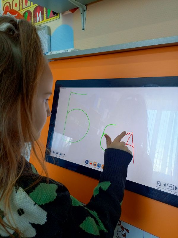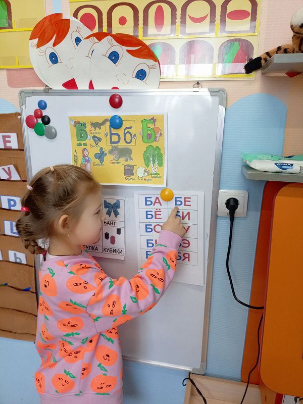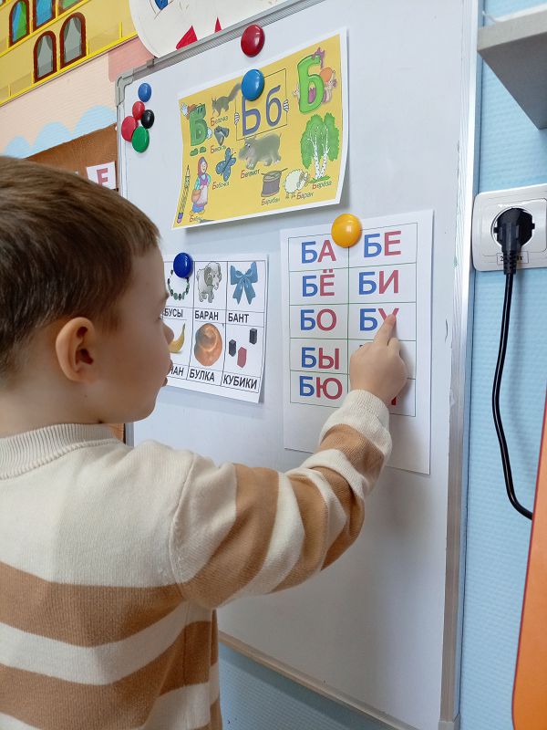 В подгруппе «Ромашки» прошло занятие с будущими школьниками. Началось занятие с развития мелкой моторики и моторики артикуляционного аппарата. Потом познакомились со звуками [б]- [б']. буквой «Б, б», научились правильно его произносить. В игровой форме ребята научились дифференцировать звук на слух в словах, закрепили понятия «согласный звук», «твердый (мягкий) согласный звук», «звонкий согласный звук». Каждый попробовал написать букву «Б» на экране логопедического комплекса и слепить её из пластилина. Учились читать слоги с новой буквой, поиграли в игру «Волшебный мешочек».