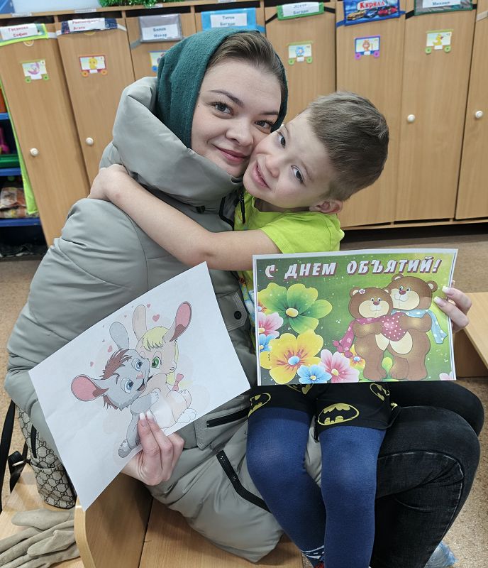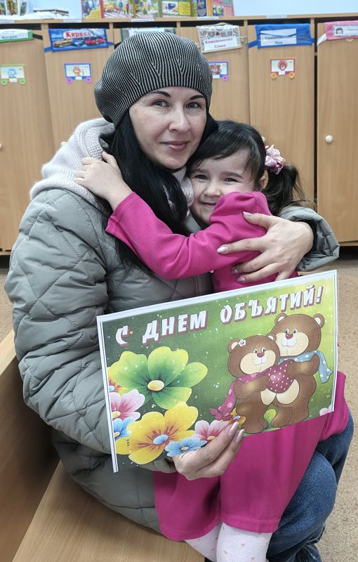 С воспитанниками средней группы "Васильки" в течение дня проводились беседы о дружбе, дети играли в игру "Найди себе пару", поделились теплом своих объятий с родителями и друг с другом, сделали открытки "Обнимашки".