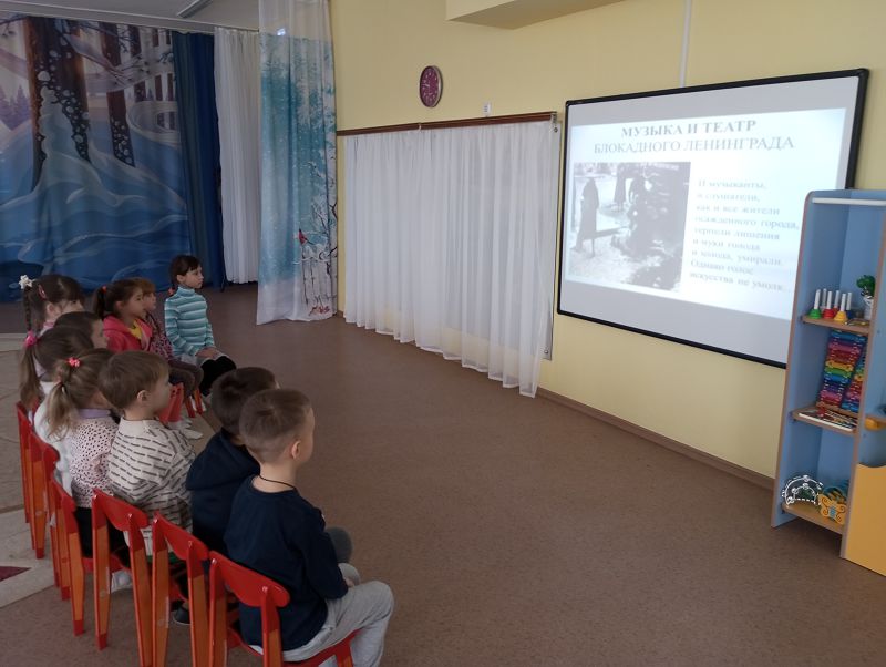 Дети посмотрели презентацию "Музыка в блокадном Ленинграде». В ней были представлены факты о том, как тяжело было людям выживать в трудные времена. В завершении, ребята почтили память минутой молчания всех тех, кто погиб во время блокады. Это было важное напоминание о том, какой ценой завоёваны свобода и мир.
