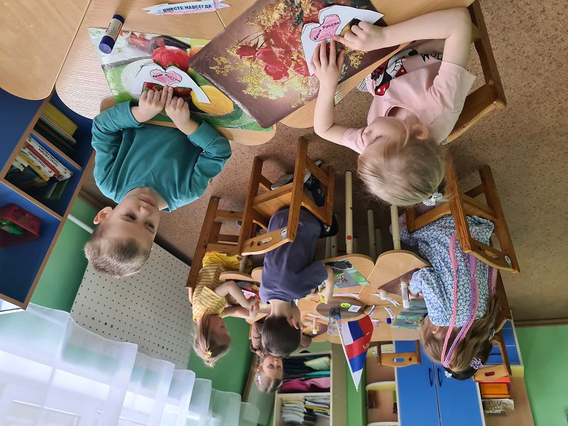 С целью формирования у детей патриотических чувств, уважения к истории, развития интереса к историческим событиям, в гр. " Васильки", было проведено тематическое занятие, посвящённое Дню воссоединения Крыма с Россией. Ребята узнали об историческом прошлом Крымского полуострова, о народах, проживающих в Крыму в настоящее время, о культурном наследии. Раскрасили сердечки, приклеили их на ладошки.