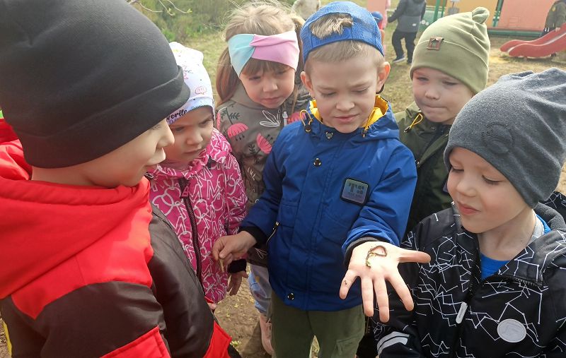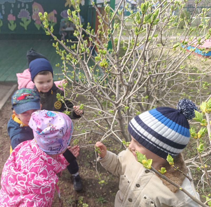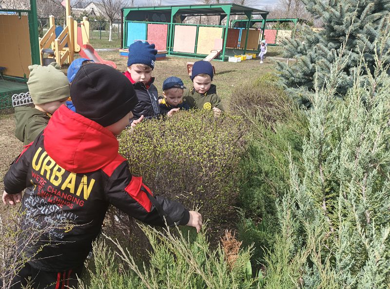 Воспитанники группы «Васильки» на прогулке наблюдали за деревьями, кустарниками, цветами на своём участке. Ребята с любопытством разглядывали божью коровку и дождевого червя. В ходе наблюдения дети сделали вывод о роли света, тепла и влаги в жизни растений и насекомых. Так же закрепили правила бережного обращения с растениями и с насекомыми: нельзя ломать, рвать, топтать.