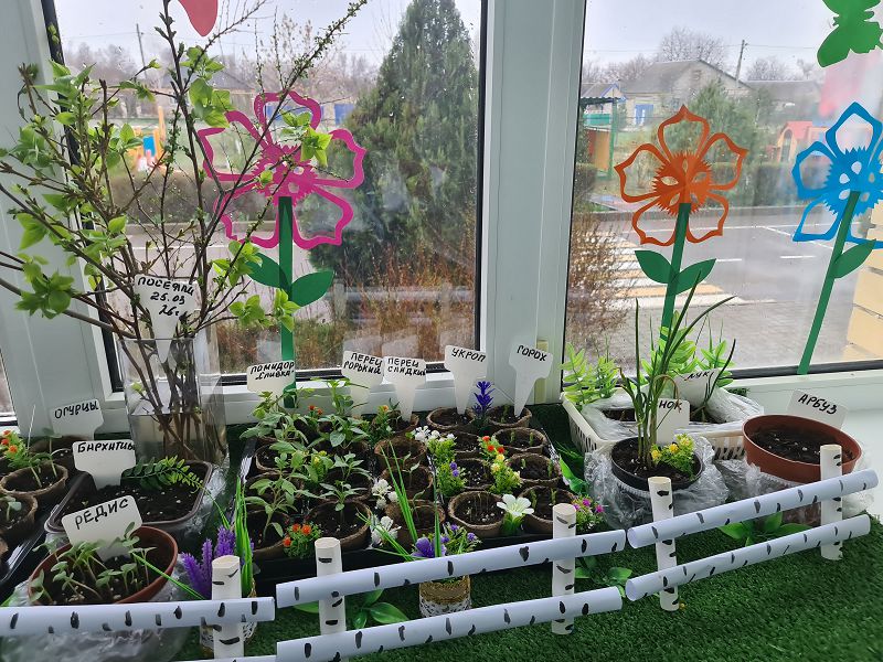 Дети группы " Васильки» создали небольшой огород на подоконнике. 25 марта ребята вместе с воспитателем посадили лук, посеяли семена. Родители поделились рассадой сладкого и горького перца, помидор. Семена гороха, редиса, свёклы и огурцов уже проросли. У ребят появилась возможность наблюдать как появились первые ростки, как заметно подросла рассада. С интересом рассмотрели распустившиеся почки сирени, берёзы и кустарников. Ребята наблюдают, поливают и ухаживают за своим маленьким огородом.