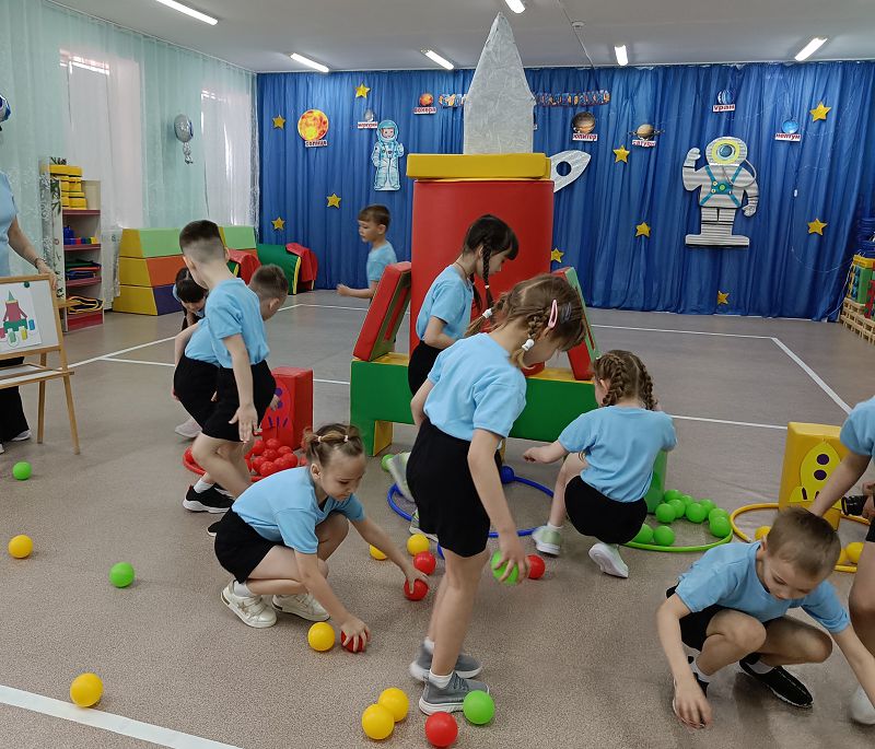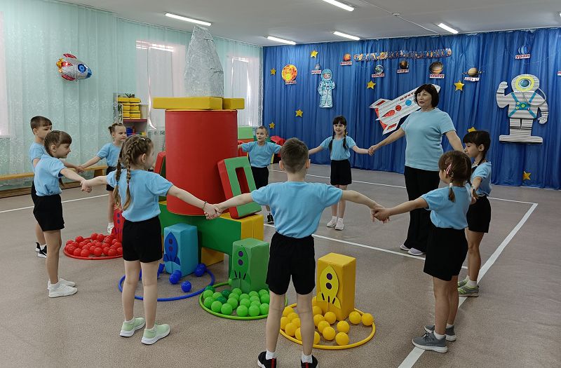 Тема космоса всегда вызывает у всех живой интерес. Она позволяет не только развивать физическую активность, но и фантазию, воображение, познавательный интерес, особенно если вокруг сияют звёзды и звучит космическая музыка. Сегодня день космонавтики отметили увлекательным занятием группа «Колокольчики».
