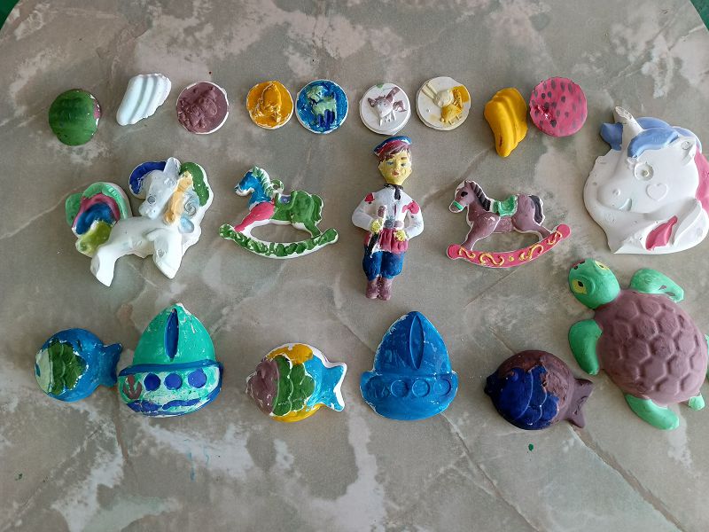 С большим интересом и увлечением дети разукрашивали сделанные фигурки из гипса. Лошадки, казак, цветочки, рыбки и многие другие изделия засияли разными красками!