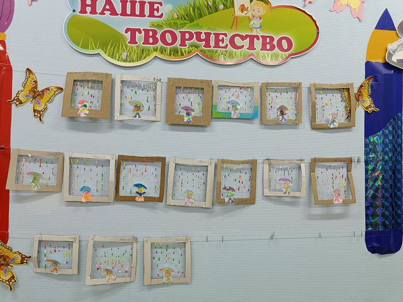 Ребята из разновозрастной группы сделали из воздушного пластилина дождик. Капельки сделали разноцветными, поэтому дождик получился нескучным и очень даже ярким и весёлым. Лепить из воздушного пластилина одно удовольствие – он не липнет к рукам и развивает мелкую моторику, к тому же капельки нужно было прикрепить к ниточкам – кропотливая работа, но все справились! И красиво, и полезно!