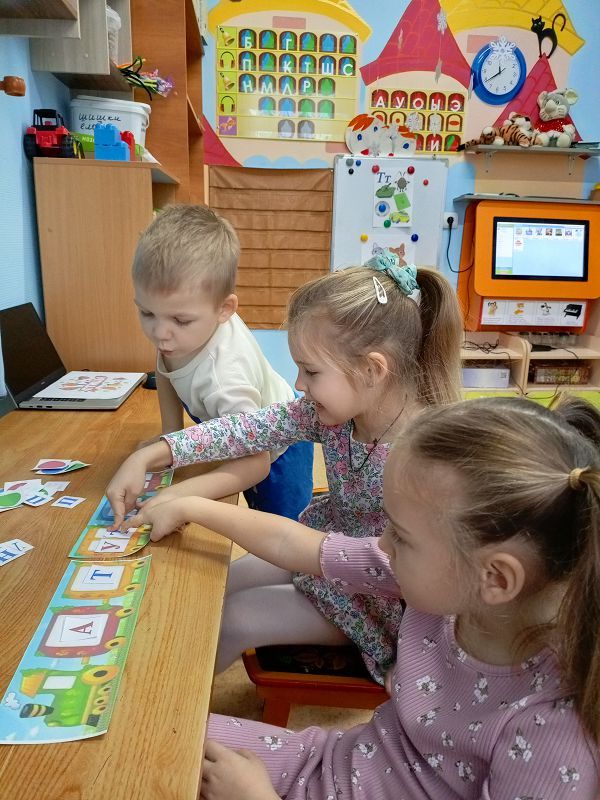 В старшей подгруппе «Ромашки» прошли занятия по обучению детей грамоте. На занятиях ребята продолжают учить звуки и буквы русского алфавита. Учитель-логопед Наталья Викторовна рассказала ребятам что такое слоги и показала как правильно делить слова на слоги.