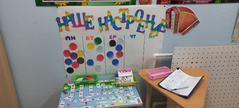 1. Акция «Моё настроение»: дети каждый день выбирают тот цвет, который похож на их настроение, рисуют смайлик и приклеивают на плакат. Такая активность способствует улучшению эмоционального состояния и развитие навыков самоконтроля.